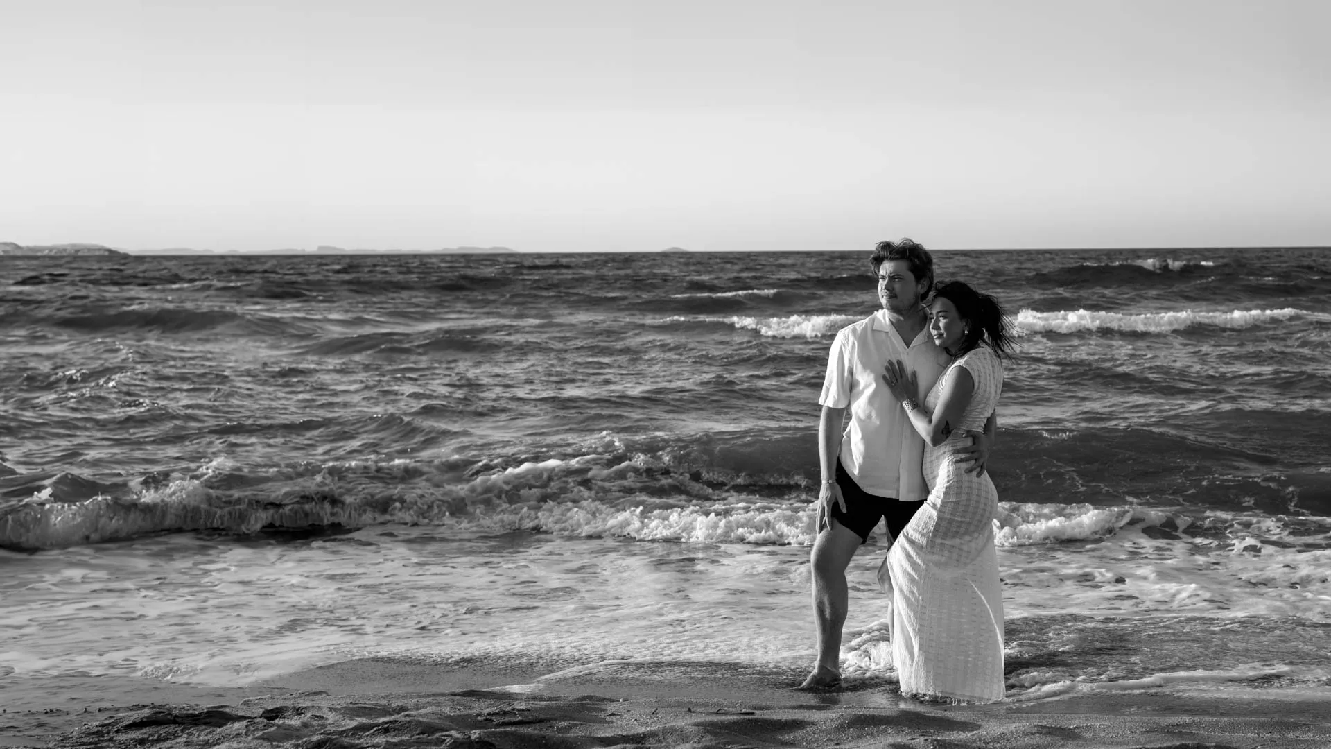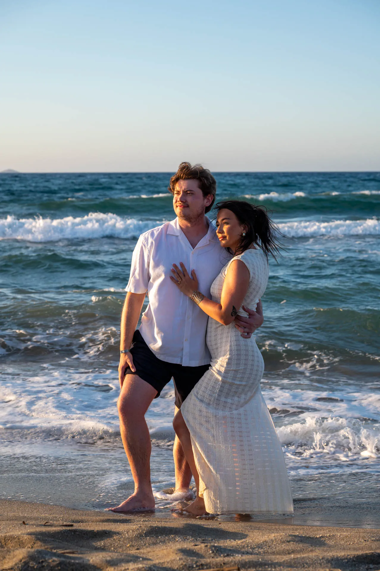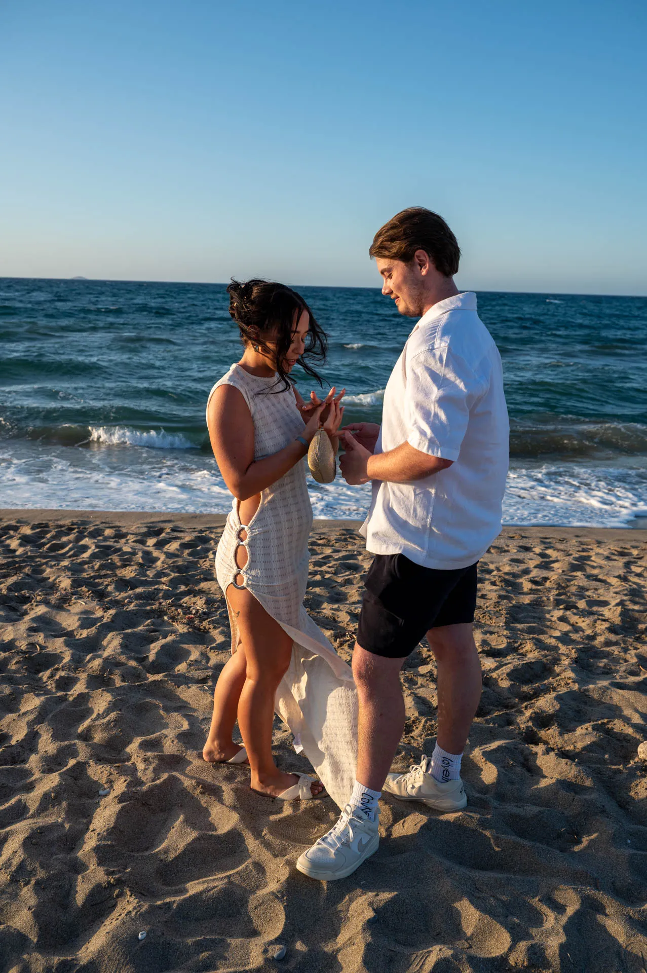 This romantic proposal took place on the peaceful shores of Aposelemis Beach in Crete, a location known for its open horizon, soft light, and calm atmosphere — perfect for an intimate “yes”.