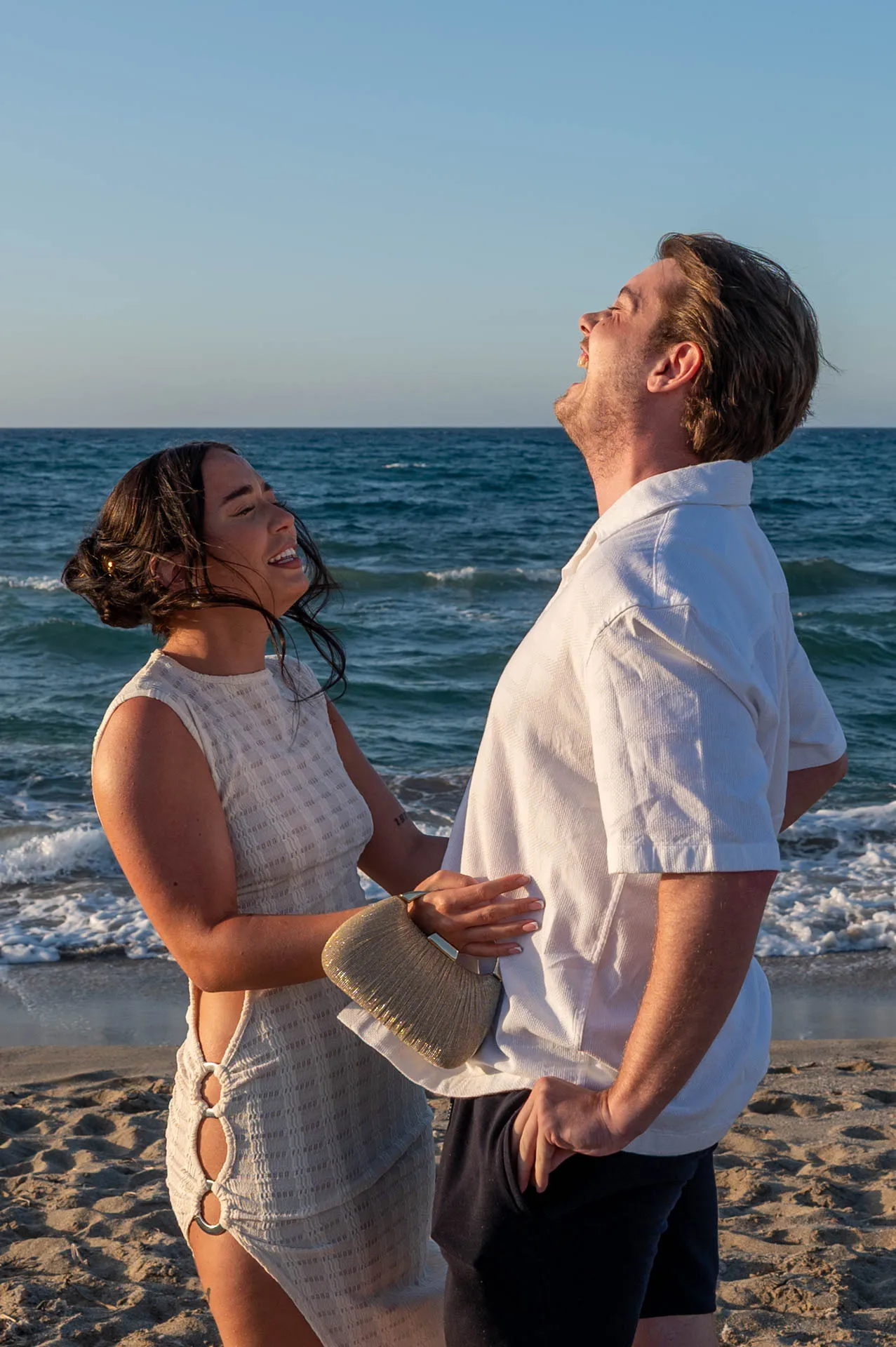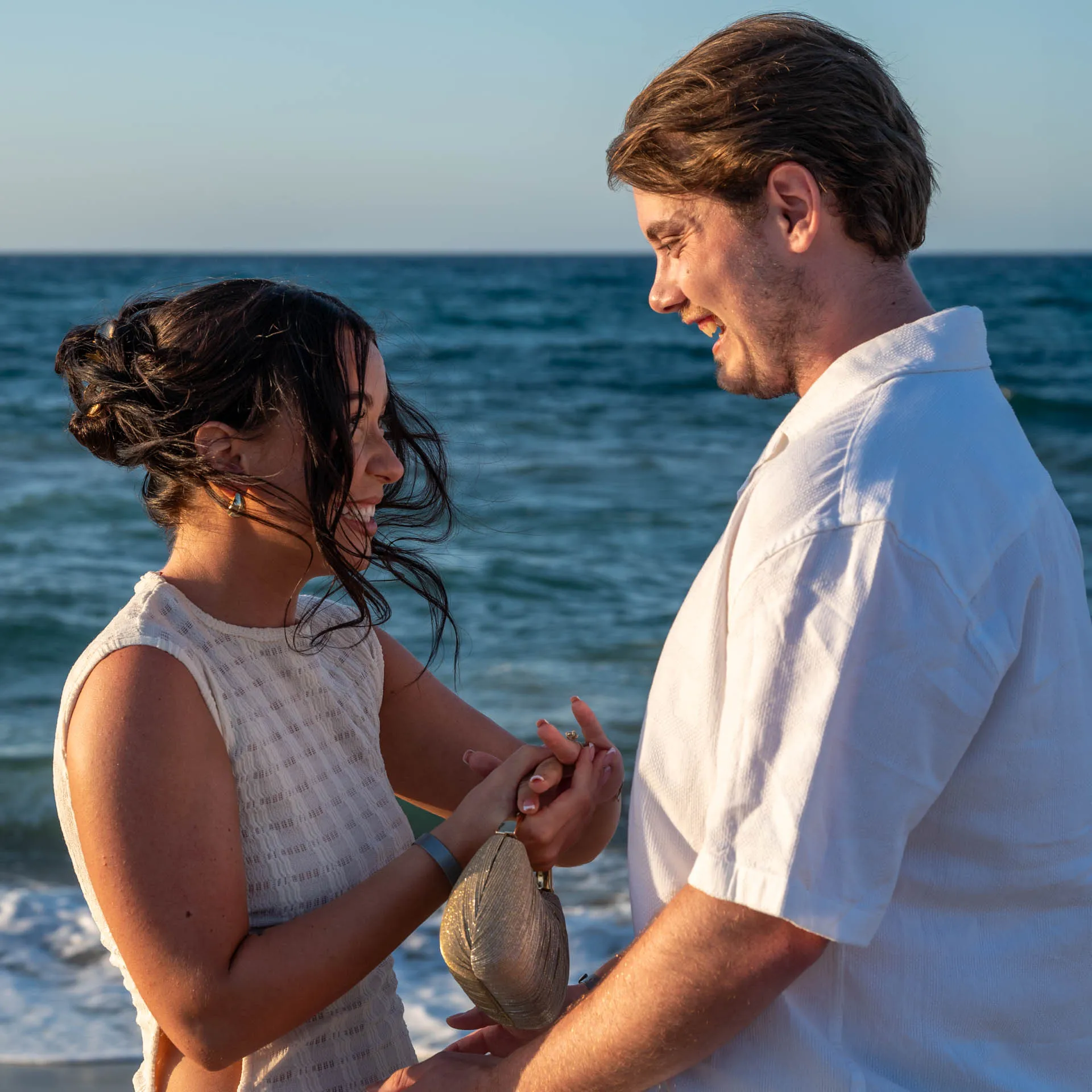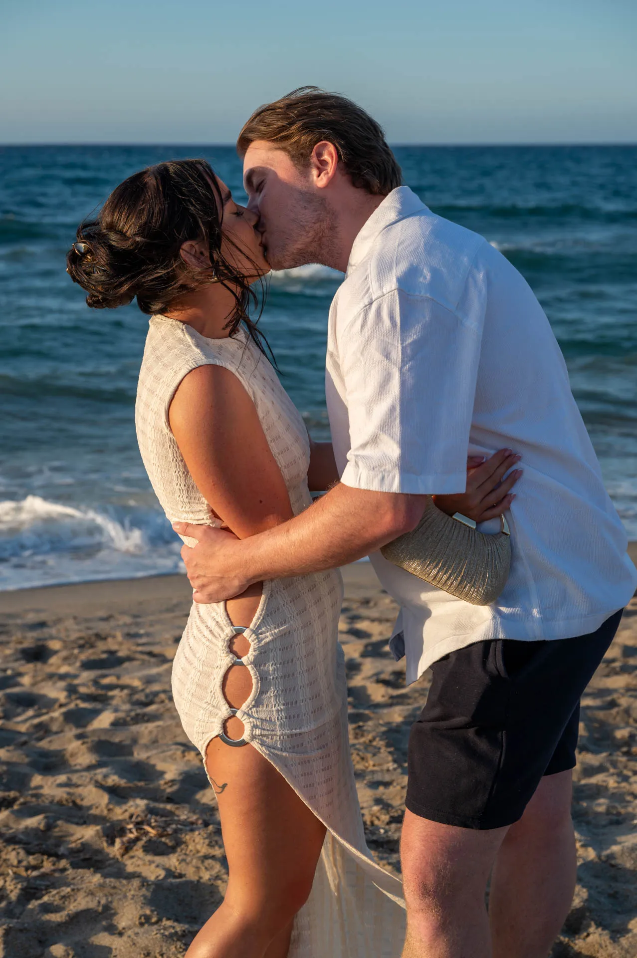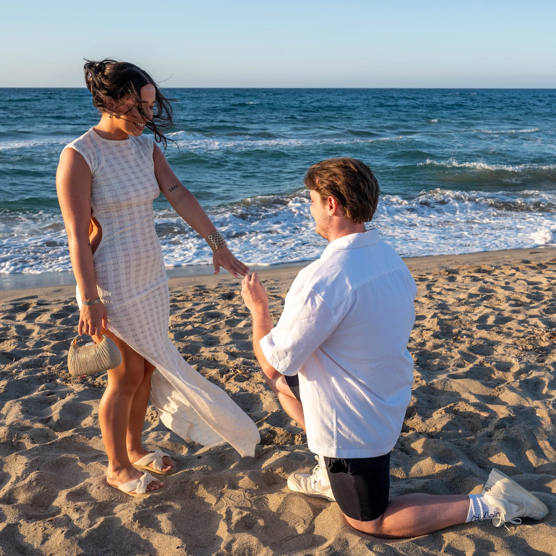 This romantic proposal took place on the peaceful shores of Aposelemis Beach in Crete, a location known for its open horizon, soft light, and calm atmosphere — perfect for an intimate “yes”.