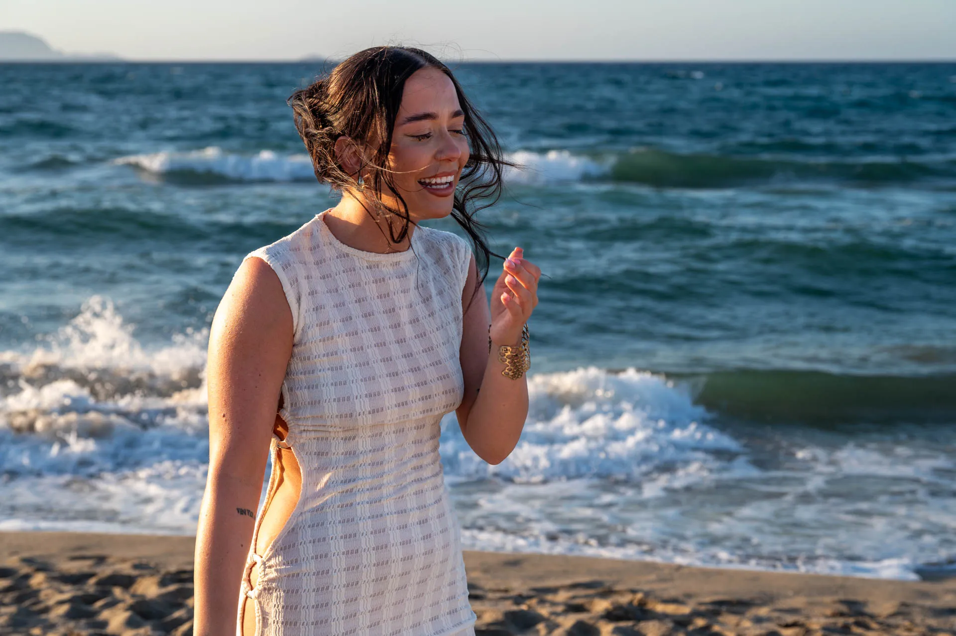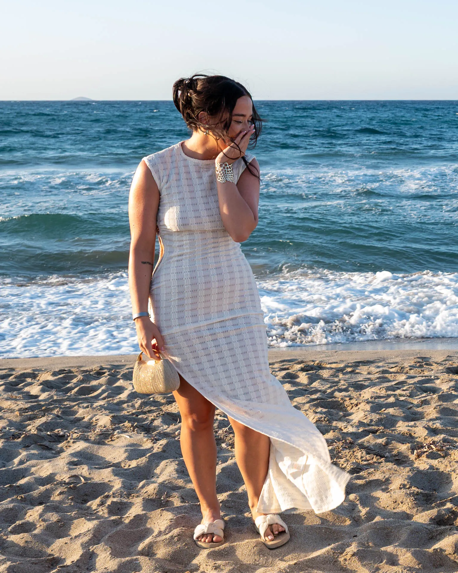 We arrived early at Aposelemis Beach to prepare quietly and blend into the surroundings. As the sun lowered and the beach became calmer, the moment came naturally.