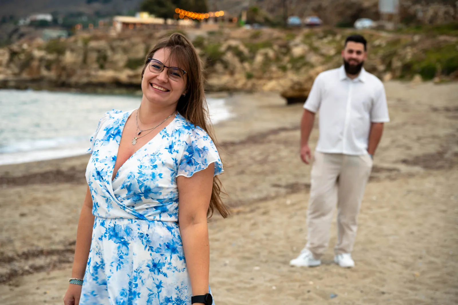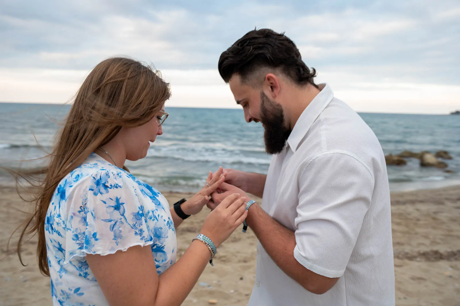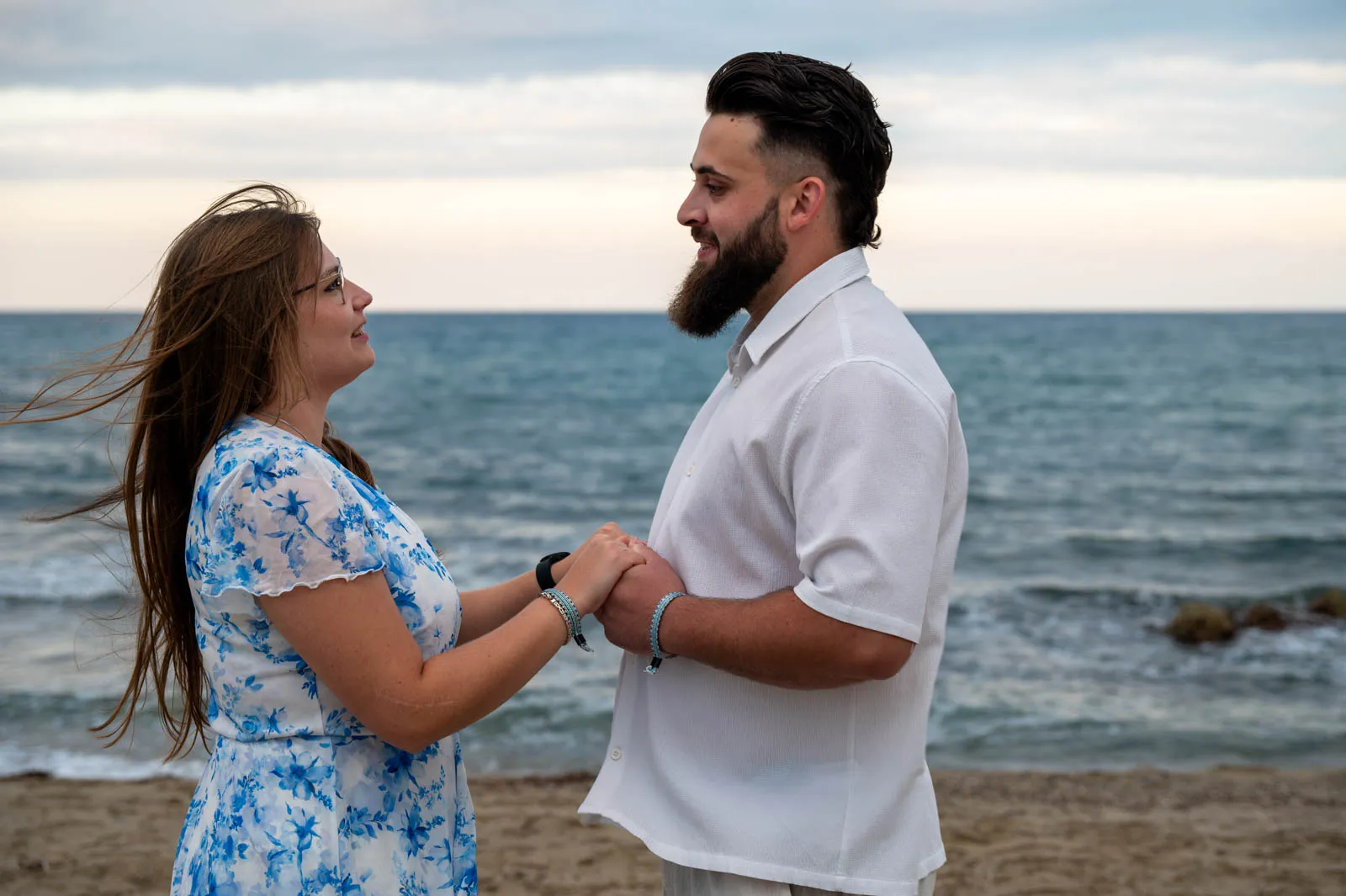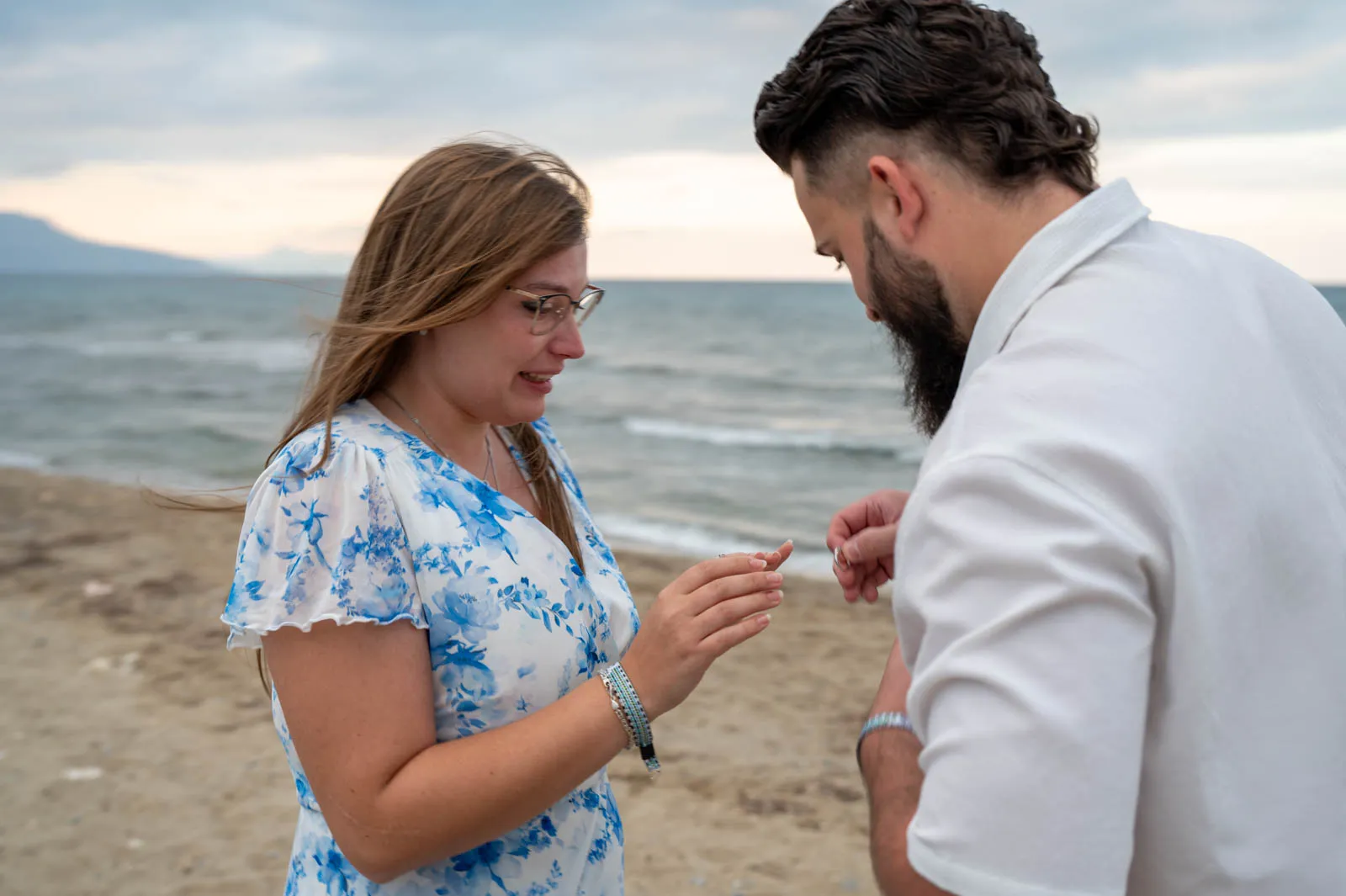 A romantic seaside proposal on the peaceful shore of Petres Beach, near Rethymno, Crete.