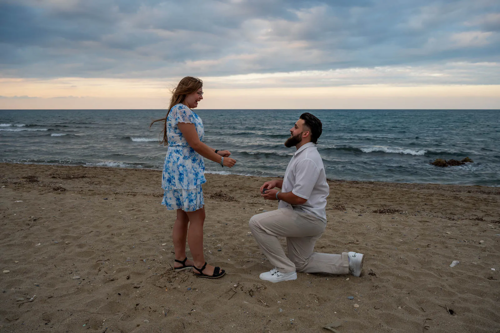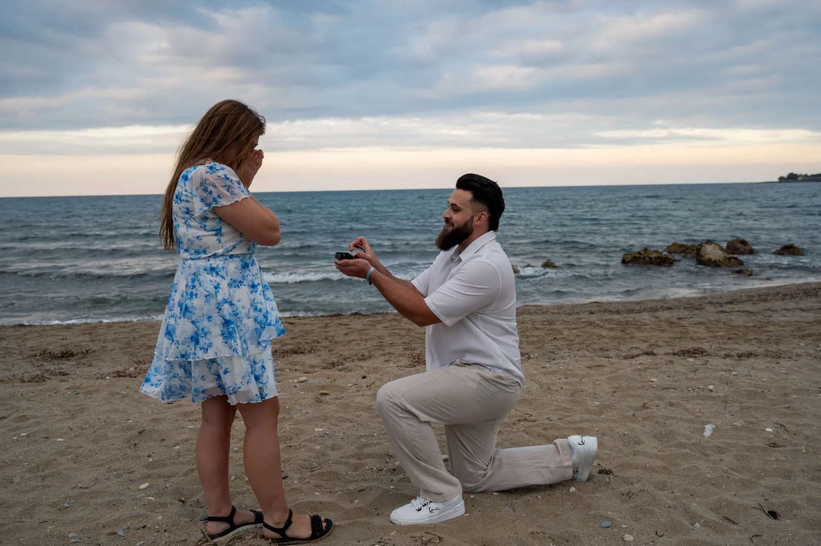 Leon planned a quiet and intimate moment by the sea, choosing a location that feels untouched and naturally romantic. With the sound of the waves and the soft colors of sunset, Sandra said “yes” — exactly as the moment deserved.