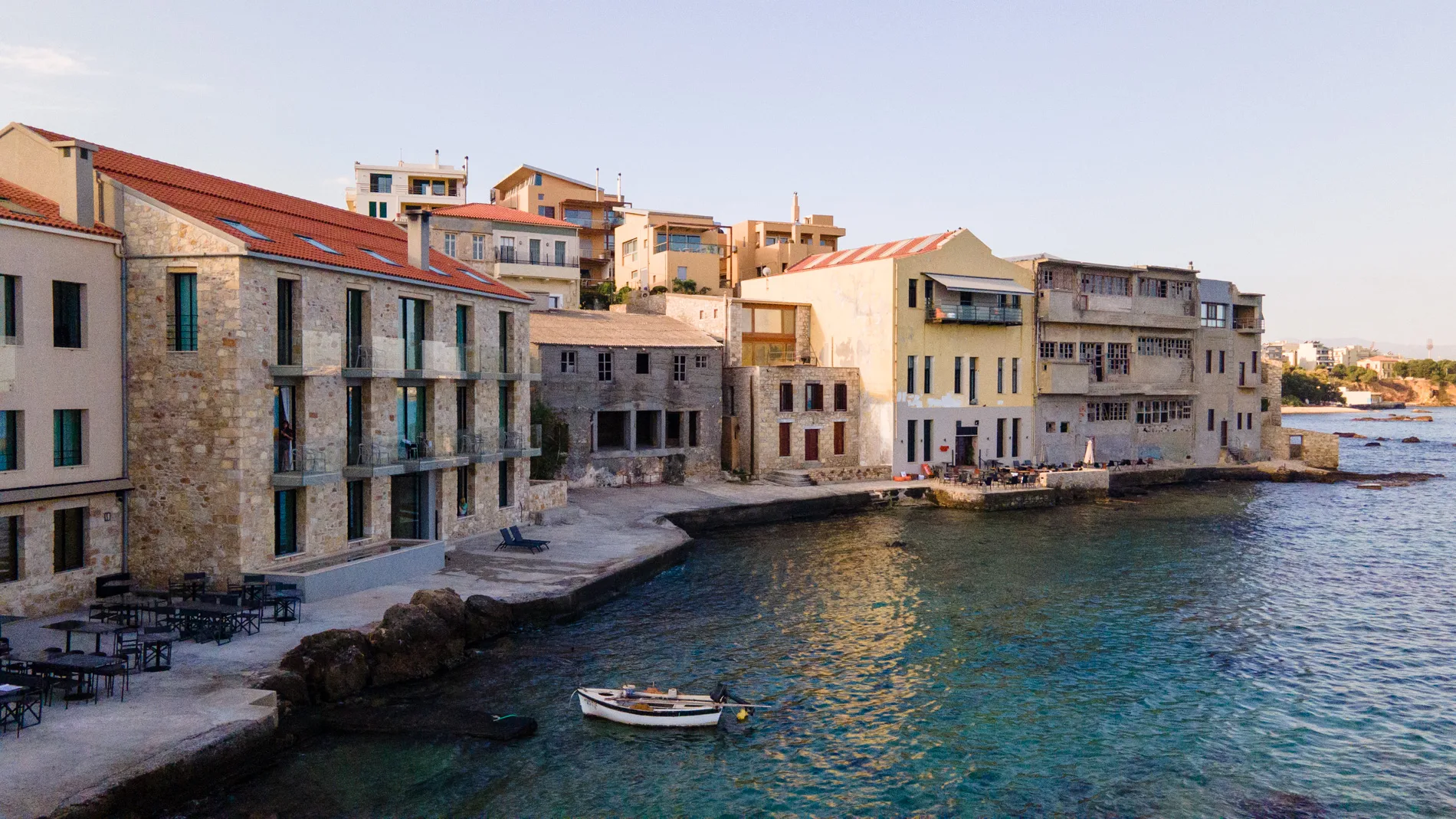 Tampakaria is one of the most atmospheric corners of Chania — historic stone buildings, sea-level paths, and a quiet, cinematic feel.