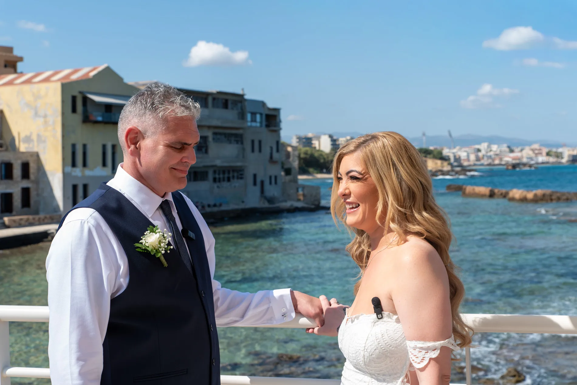 They wanted a day that was entirely theirs — no rush, no noise, no pressure. Just two people, a promise, and the Aegean horizon.