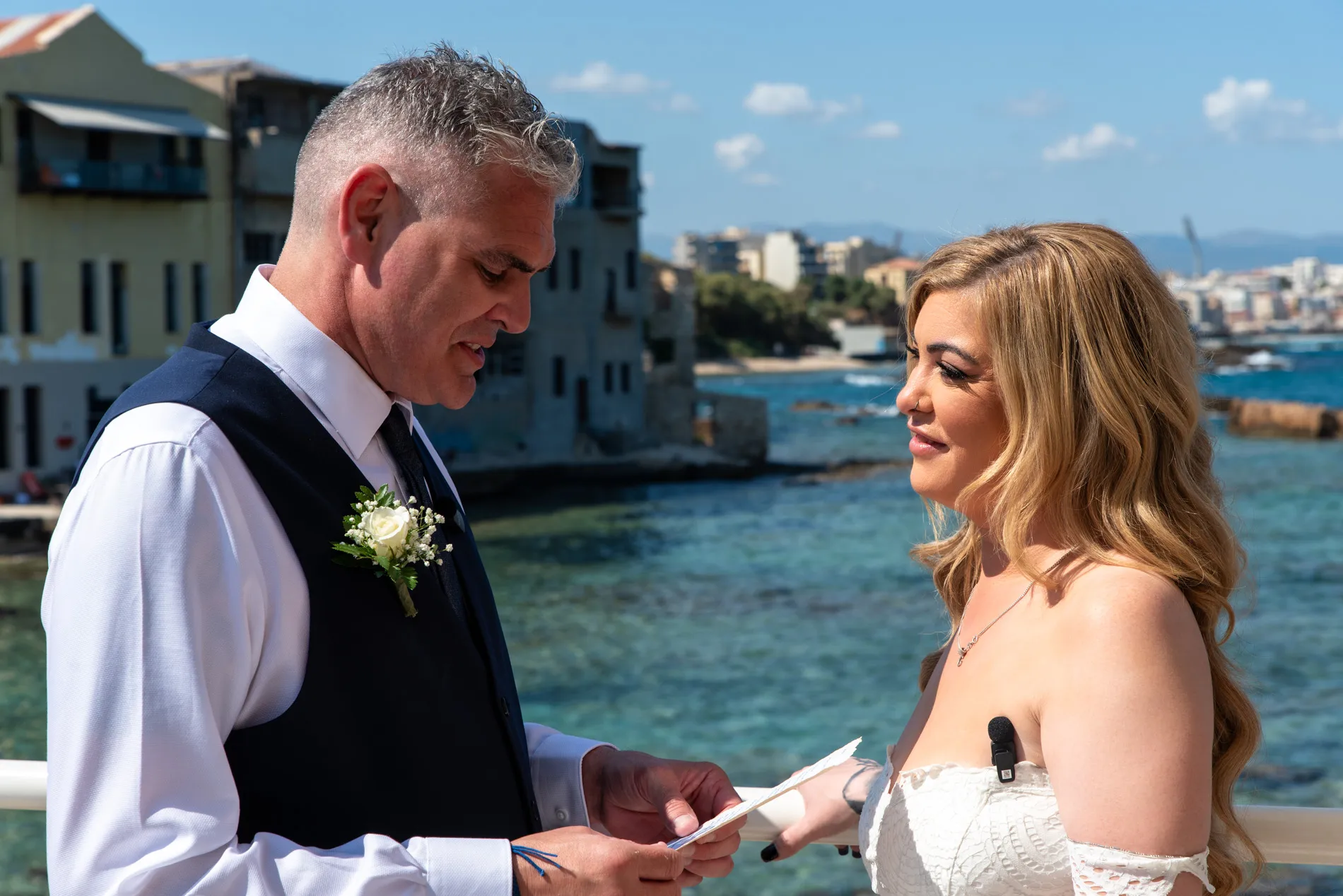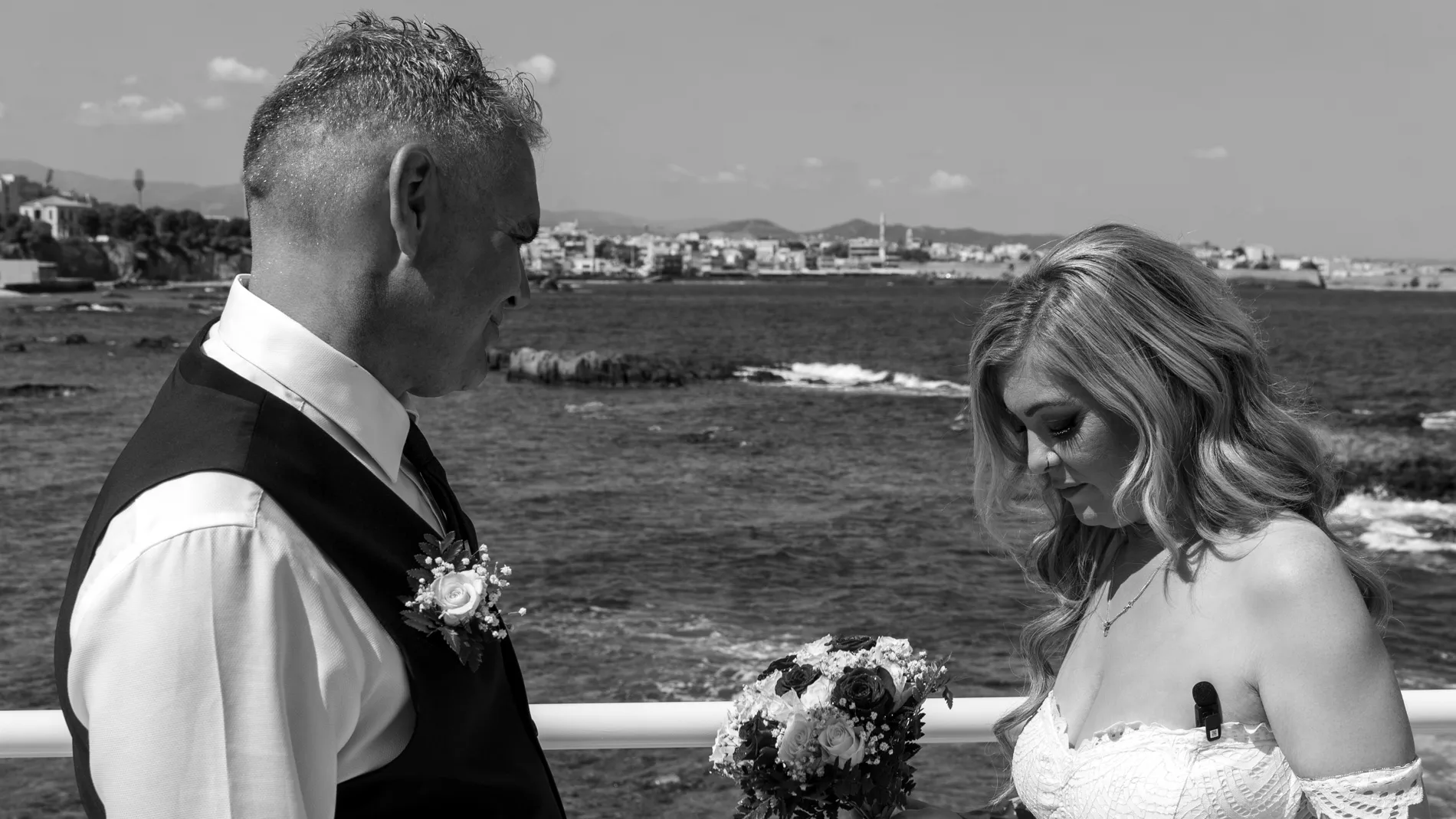 An intimate seaside elopement in Chania — quiet vows, golden light, and honest, emotional imagery.