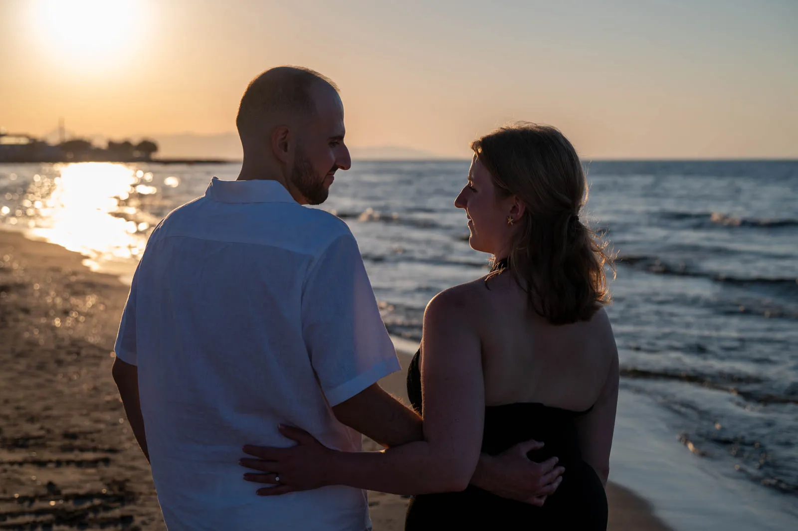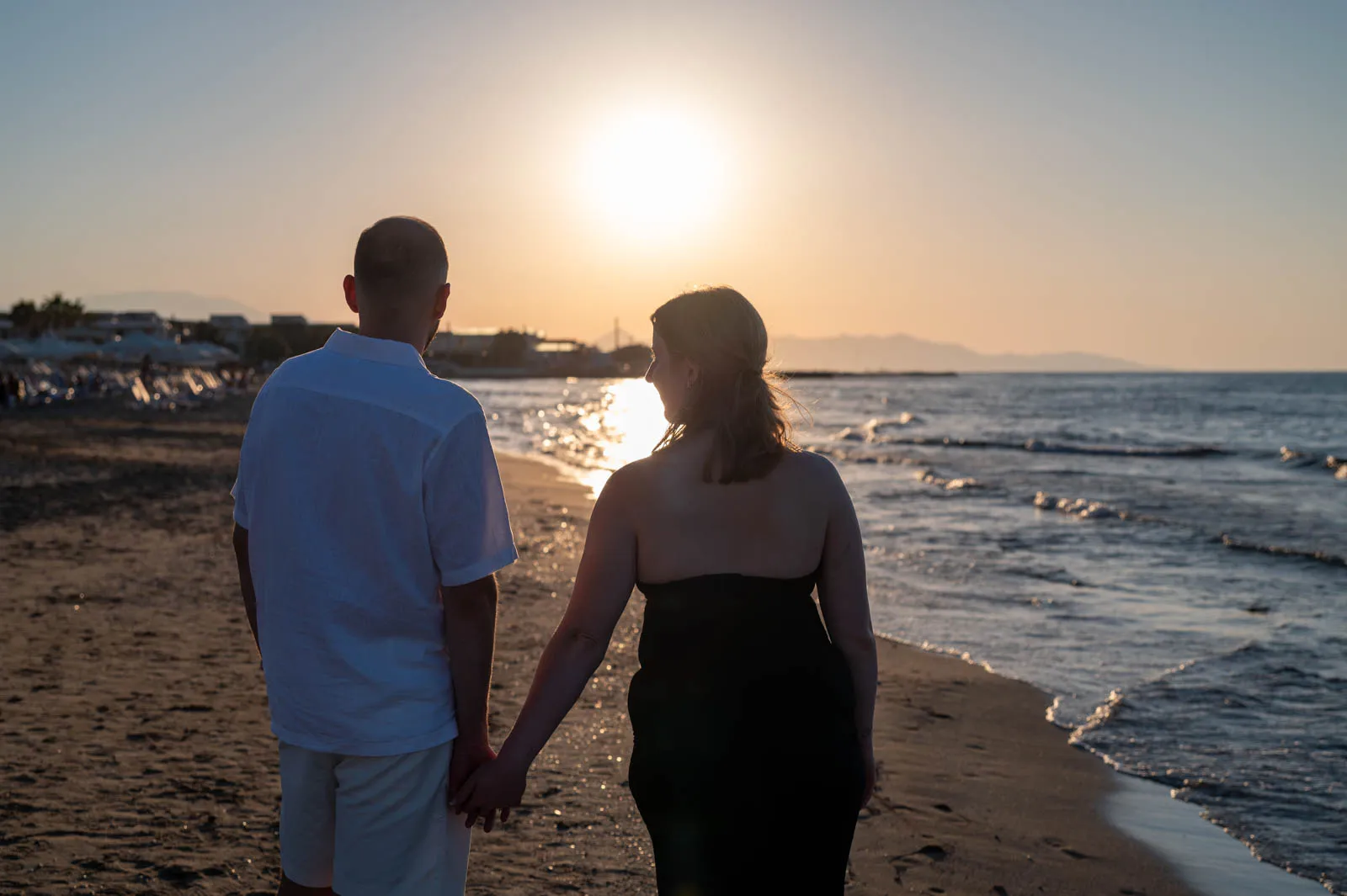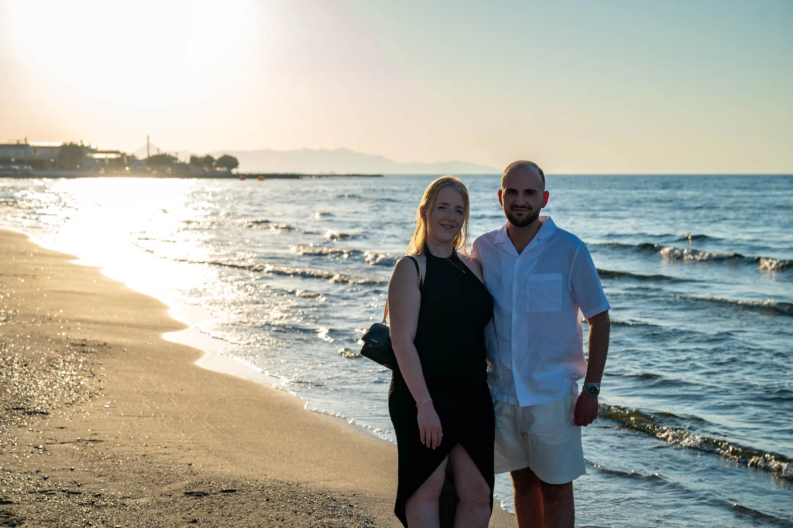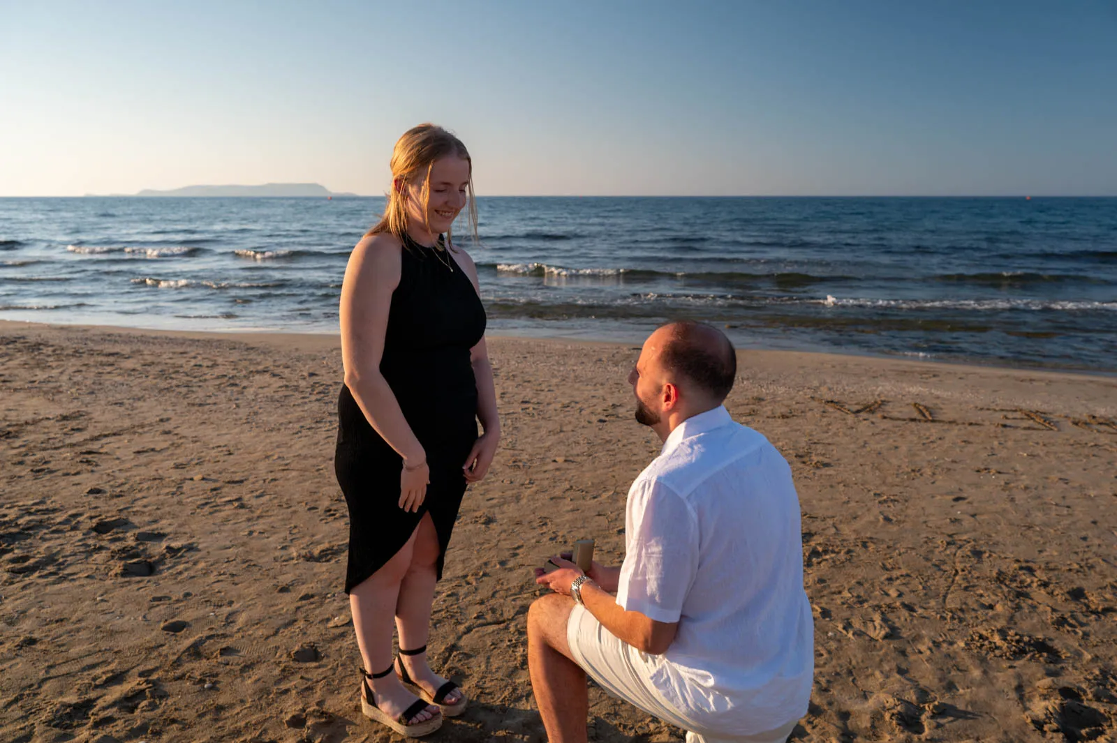 As the sun began to sink into the horizon, Analipsi Beach transformed into the perfect setting for a quiet, heartfelt proposal.
