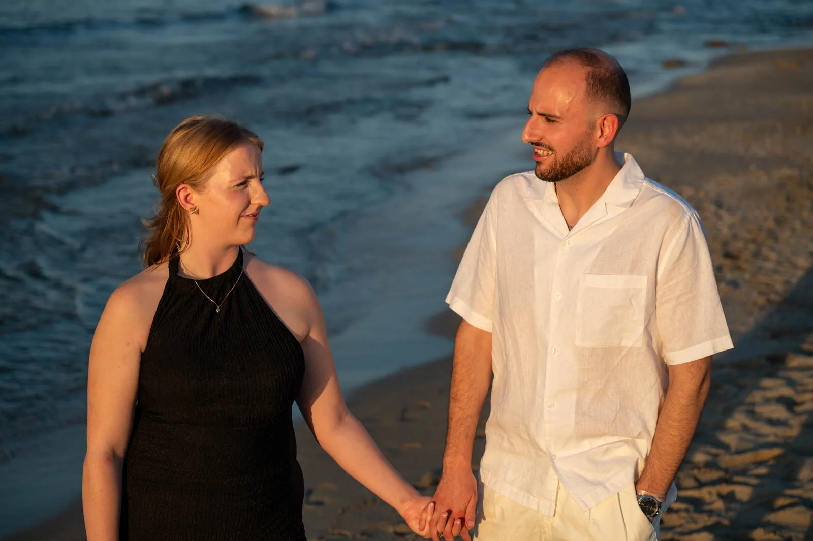 As the light softened and the sea turned calm, everything fell into place effortlessly. No staged moments, no distractions — just a walk by the water that slowly became something much bigger. When Louie stopped and turned to Sarah, the world around them seemed to pause.