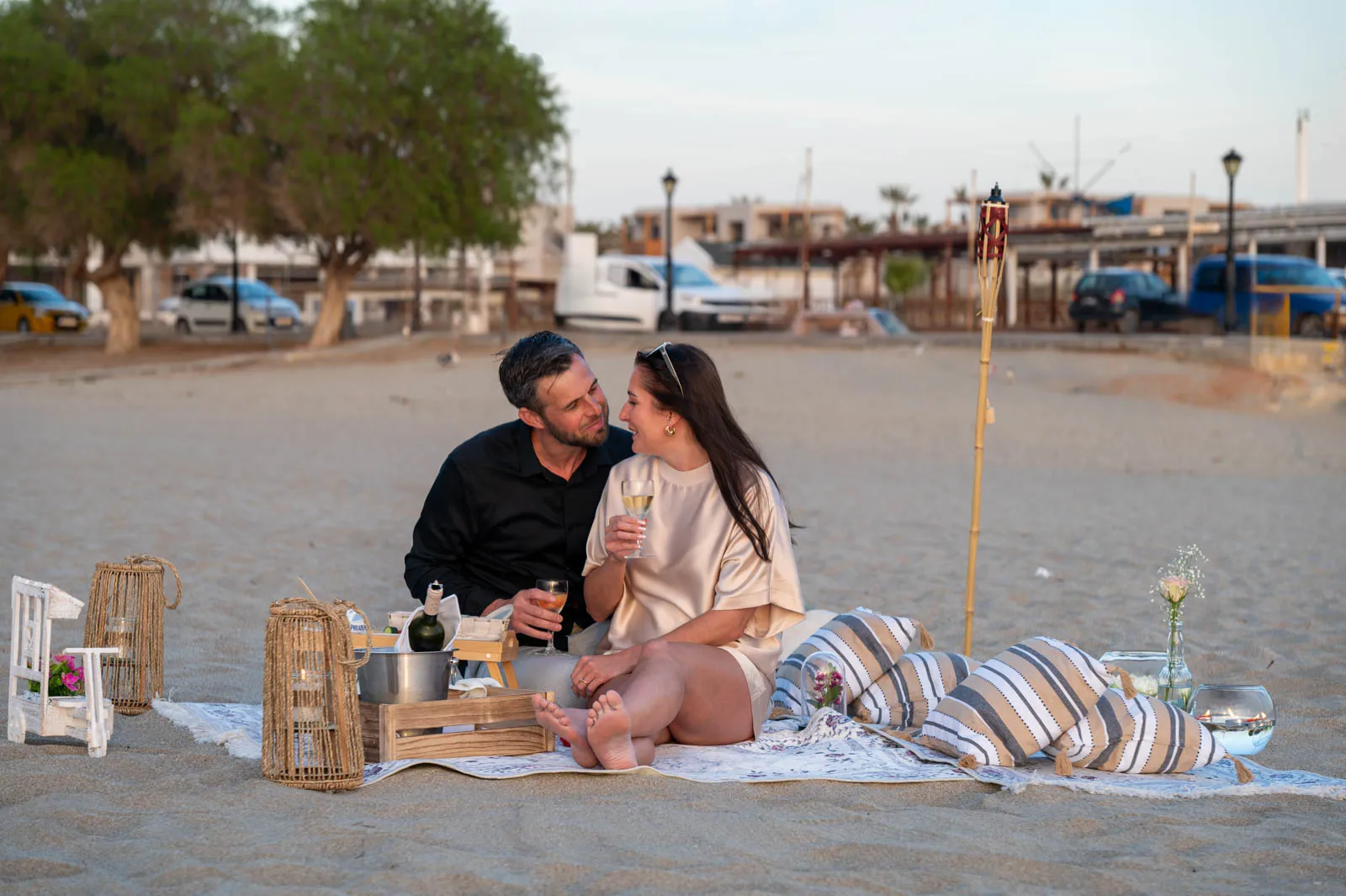 Yes. We can arrange the full setup — decorations, champagne, flowers — and coordinate with trusted local partners. The same thoughtful approach is used across proposals, elopements, and weddings in Crete.